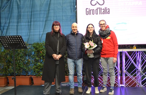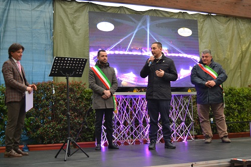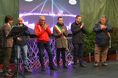 Fra gli ospiti chiamati sul palco anche la dirigente dell’Istituto Comprensivo “Marina Montessori” Cristina Ghione e la giovanissima Ludovica Ballesio, l’alunna della IIIC della scuola secondaria di primo grado “Mario Costa” che a gennaio aveva vinto il concorso indetto nelle scuole del paese per ideare il logo della Città di Tappa.