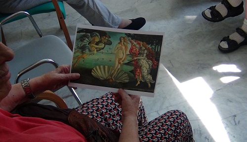 Si chiama stimolazione sensoriale attiva. Si tratta di agire sulle attività sensoriali per rievocare ricordi, stimolare la memoria, accrescere la vita di relazione utilizzando stimoli sensoriali appropriati, come odori, musica, tatto e attività artistiche. Ecco che all’Ospedale “Poveri Infermi” di Strambino un gruppo di ospiti ha lavorato la scorsa settimana con Debora Giordi, Stefania Borlo e Andrea Zardi, sul movimento corporeo. Sul profumo e sulla carezza di una rosa sulla pelle, su una conchiglia, sull’immaginare la sabbia di una spiaggia sotto i piedi. Tutti elementi che sono contenuti all’interno della “Nascita di Venere” di Botticelli.