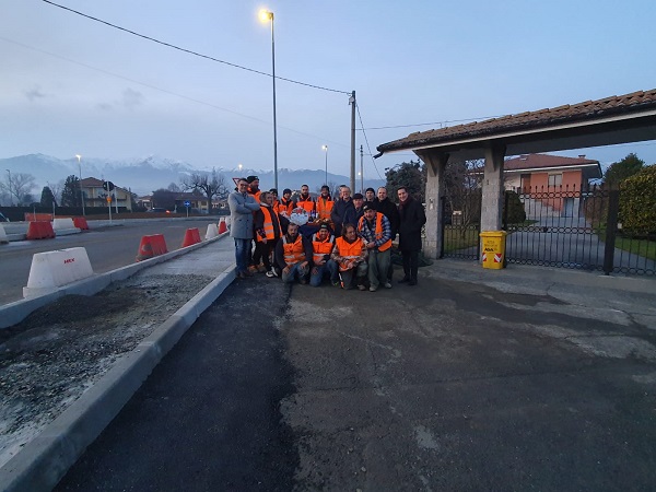 Un bicchiere di spumante e un fetta di panettone: è così che è stata, nel tardo pomeriggio di ieri, venerdì 23 dicembre, inaugurata l’apertura della rotatoria che è stata realizzata dalla ditta F.D. Scavi e Costruzioni di Borgata Chiarabaglia di Favria. La nuova rotonda, finanziata dalla Città Metropolitana, è costata 230 mila euro e consentirà di eliminare un incrocio pericolo che, in passato, è stato teatro di numerosi incidenti stradali.