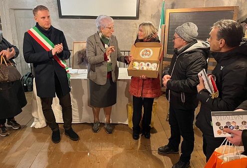 Sabato 21 dicembre, Sandra Baruzzi e Guglielmo Marthyn, insieme al Sindaco di Castellamonte Pasquale Mazza, hanno consegnato il dono alla Vicepresidente della Proloco di Castellamonte, Wilma Revello, accompagnata da alcuni consiglieri. Il gesto, particolarmente apprezzato, ha consolidato un legame di amicizia e collaborazione tra le due comunità, con la promessa di futuri scambi culturali e artistici. La mostra “Natività” celebra l’arte e la spiritualità, rafforzando i legami tra territori e persone in un dialogo proiettato verso il futuro.