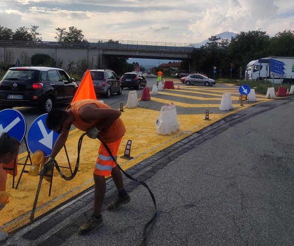 Attualmente per il cantiere sono prescritte come limitazioni dal chilometro 17+400 al chilometro 18+050 l’istituzione del limite di velocità a 30 km/h e il divieto di sorpasso; in una fase successiva è previsto un periodo di chiusura al traffico con deviazione su percorsi alternativi.