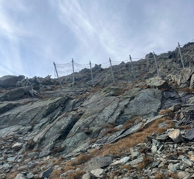 Sulla base delle valutazioni tecniche, è stata scelta una delle tre zone per la realizzazione di opere di difesa attiva, progettate per ridurre il volume di neve in movimento e mitigare il rischio di scorrimento valanghivo. Le reti metalliche fermaneve, di nuova generazione, sono state installate in quota e sono dimensionate per contenere accumuli fino a 3,5 metri di altezza, trattenendo la massa nevosa e impedendo che questa si trasformi in un flusso capace di investire la Strada Provinciale 1 o raggiungere le abitazioni del paese.