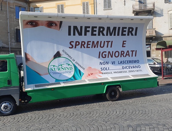 Come in altre Aziende Piemontesi anche presso l’Asl T04 non mancano le criticità e a Torino il prossimo 28 gennaio, sarà presente in piazza Castello una delegazione di lavoratori. Nel frattempo, dei camion a vela gireranno e stazioneranno per i vari Ospedali dell’Asl T04 con lo slogan: spremuti e ignorati, non vi lasceremo soli dicevano…parole, promesse, zero fatti. La carenza di personale è tangibile dall’inizio della pandemia, ma nelle ultime settimane il numero di operatori positivi sta mettendo a dura prova i servizi.