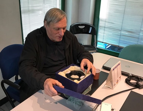 Ad accogliere e guidare don Luigi Ciotti è stata a famiglia Rosboch-Pomatto. L’incontro è stato proficuo e ha consentito a don Luigi Ciotti di intrattenere un foltissimo numero di dipendenti della società su temi di scottante attualità come la cultura della legalità, del diritto al lavoro, dell’impegno degli imprenditori canavesani, in particolare dei titolari della Omp Group, che negli anni hanno creato concrete occasioni di lavoro per tanti canavesani. A presentare don Luigi Ciotti all’uditorio è stato il general manager Fabrizio Rosboch che ha sottolineato come l’impegno quotidiano del sacerdote, che è ancora nel mirino della criminalità organizzata, abbia creato un largo seguito in Italia e in tante nazioni d’Europa.