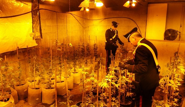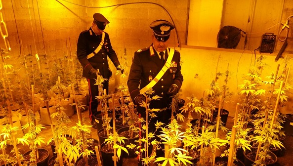 , 38 anni, entrambi pregiudicati residenti a San Giusto Canavese. Avevano attrezzato di tutto punto un laboratorio, affittato per l’occasione, per la produzione di marijuana in uno stabile industriale sito su strada Bairo a Castellamonte. Al suo interno vari ambienti dedicati: uno alla coltivazione vera e propria, uno all’etichettatura dei vasi (con indicazione di data di travaso e tipo di seme usato), uno all’essiccatura, uno al peso, uno alla selezione e al setaccio ed uno al confezionamento della marijuana. Nella stanza adibita a serra, i carabinieri hanno rinvenuto 130 piante di cannabis. Per innaffiarle e riscaldarle era stato realizzato un avanzato impianto idrico, di ventilazione ed un sistema di apposite lampade termiche indoor, il tutto per un valore di diverse migliaia di euro.