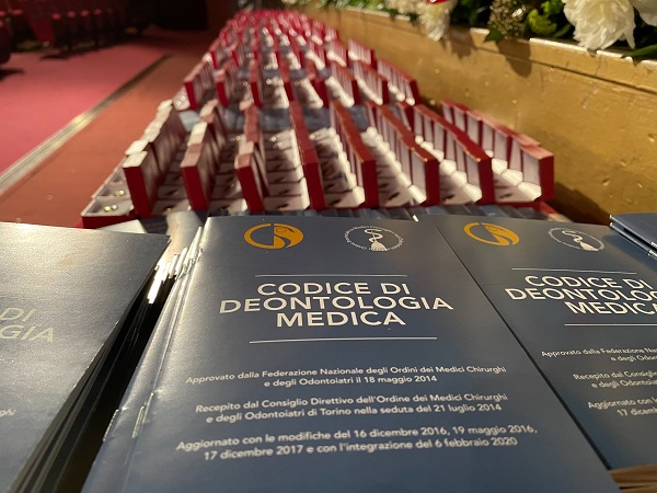 Dopo due anni di interruzione per la pandemia, sabato 7 maggio 2022 è tornata l’emozione del giuramento per i neo iscritti all’Ordine medici e odontoiatri di Torino: oltre 200 giovani medici e odontoiatri, che si erano iscritti nell’anno 2020 ma che non avevano ancora potuto celebrare la loro cerimonia. Hanno ricevuto tutti il distintivo dell’Ordine e una copia del codice deontologico della professione.