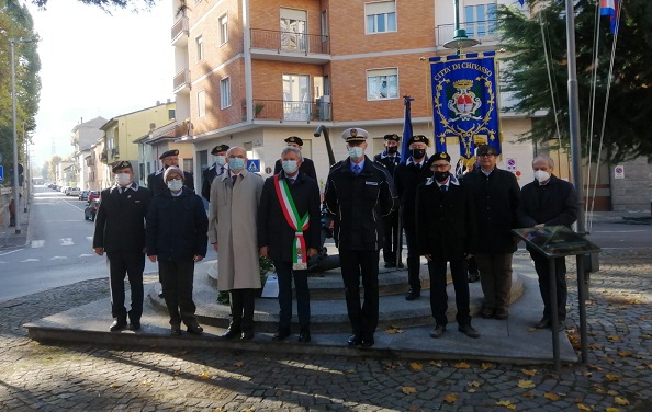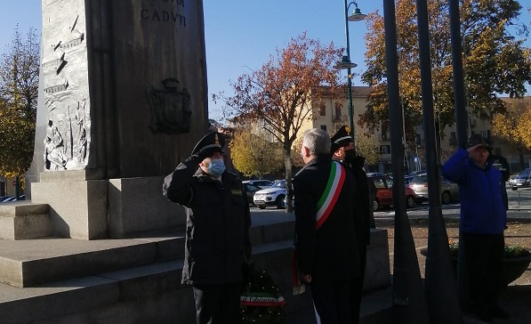 Pur senza il tradizionale corteo, il Comune di Chivasso, questa mattina, ha commemorato i caduti di tutte le guerre e celebrato la Giornata dell’Unità Nazionale e delle Forze Armate. Alle ore 8,30, in località Boschetto, il sindaco Claudio Castello, assieme alle altre autorità, ha avviato il cerimoniale deponendo una corona d’alloro nel Parco della Rimembranza. Stessi onori sono stati resi successivamente, in località Castelrosso, al Monumento ai Caduti, al Parco della Rimembranza e al Monumento ai Caduti senza croce con la scopertura di una targa al Milite Ignoto. A Castelrosso, la manifestazione è stata coordinata dall’Associazione Nazionale Alpini, con l’accompagnamento della Società Filarmonica della stessa frazione.