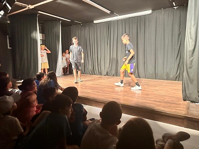 In questo contesto di altissimo livello nasce il Campus Est-Arte, che accoglie bambini e ragazzi con un approccio unico: giocare sì, ma con arte. Accanto alle tradizionali attività ricreative – piscina, canoa, giochi di gruppo, corsi di pronto soccorso e perfino addestramento cuccioli – ogni settimana è scandita da laboratori teatrali, momenti di esplorazione emotiva e lavoro su piccole performance. Ogni venerdì, infatti, i partecipanti vanno in scena con uno spettacolo preparato insieme nei giorni precedenti.