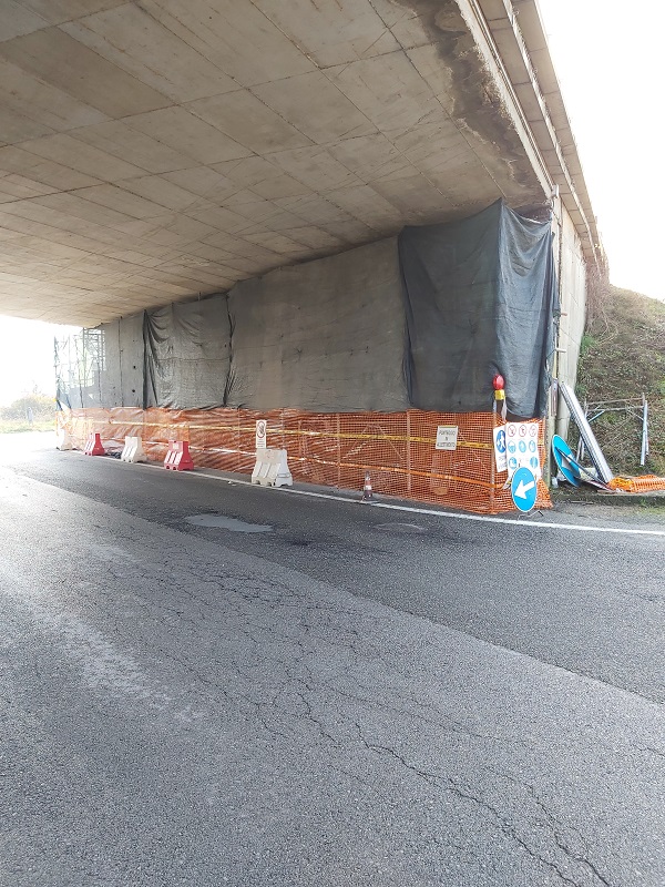 Al momento le lavorazioni riguardano le spalle/piedritti del sottopasso strada provinciale 220 d1 e le pile e pulvini del dello scavalco strada provinciale 11-strada provinciale 93, a margine delle carreggiate stradali, con operazioni di demolizione delle parti ammalorate, successiva passivazione delle armature, ricostruzione delle armature parzialmente mancanti, ripristini strutturali con prodotti specifici ad alte prestazioni; per completare con rasature e stesa di protettivo.