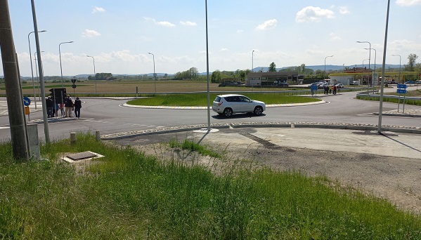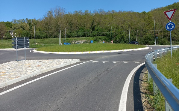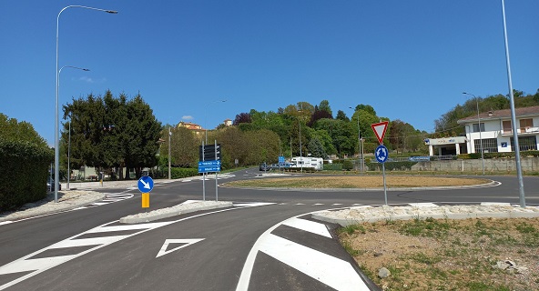 La nuova rotatoria, a 4 bracci, interessa due strade provinciali e una comunale. Ha un diametro di 40 metri, senza fascia valicabile e una corsia anulare di 7 metri, con ingressi larghi 3 metri e mezzo e uscite larghe 4 metri e mezzo. Sono state previste una illuminazione periferica con corpi illuminanti a Led, due piattaforme rialzate per ridurre le velocità dei veicoli in approccio alla rotatoria, bitumature delle aree limitrofe, un tratto di percorso pedonale protetto, la canalizzazione delle acque piovane e opere minori di sistemazione dell’area. La rotatoria è corredata da una segnaletica luminosa ad intermittenza per migliorare la percezione della nuova intersezione.