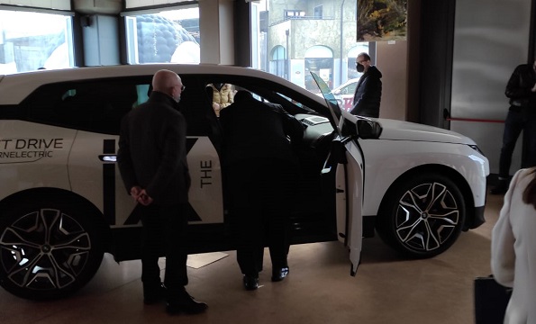 Nel corso della serata è stato possibile ammirare e apprezzare la nuova “perla” prodotta dalle officine della casa automobilistica bavarese. La BMW iX è caratterizzata da superfici generose e linee caratteristiche conferiscono alla BMW iX un aspetto monolitico. Un design con superfici aerodinamiche, insieme a caratteristiche specifiche come la forma del finestrino che si assottiglia verso la parte posteriore nella zona laterale “stramflow”, contribuiscono a rendere possibile l’eccezionale valore cw di 0,25.