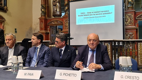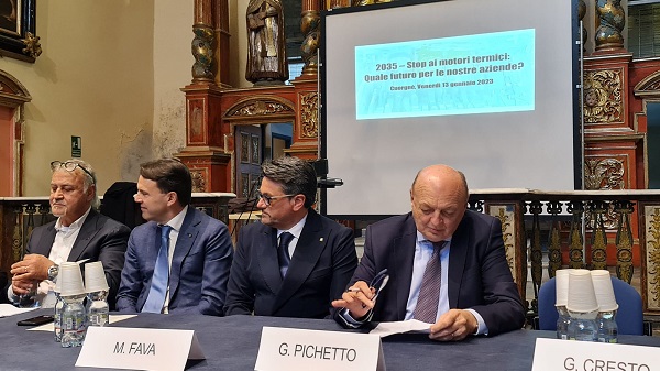 Fa discutere la direttiva europea che prevede lo stop alla produzione e alla vendita di auto a motore termico a partire dal 2035: il tema è stato ampiamente discusso e illustrato nel corso di una conferenza alla quale ha partecipato il ministro all’Ambiente e alla Sicurezza Energetica Gilberto Pichetto Fratin, venerdì 13 gennaio alle 15,30 nella chiesa della SS. Trinità in via Milite Ignoto a Cuorgnè e gli esponenti del mondo imprenditoriale dell’Alto Canavese. All’incontro, introdotto dalla sindaca di Cuorgnè Giovanna Cresto, hanno preso altresì parte Mauro Fava, consigliere regionale di Forza Italia, Andrea Tronzano, assessore regionale allo Sviluppo delle Attività produttive, Paolo Conta, presidente di Confindustria Canavese, Cristina Ghringhello, direttore di Confindustria Canavese, Fabrizio Cellino, presidente Api Torino, Alberto Russo, vicepresidente Api Torino e Nicola Scarlatelli, presidente Cna della Città Metropolitana di Torino.