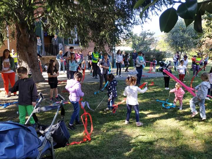 I volontari del Gruppo di Cammino Asl, hanno poi raccontato ai più piccoli la prima parte della fiaba, mente mamme e nonni eseguivano alcuni esercizi guidati dai coach, per poi riprendere in seguito il loro percorso. Nel mente le mamme rimaste con mom’s hanno potuto seguire un piccolo assaggio dello “yoga in fascia” guidate dalla dolcissima insegnante Silvia De Pasquale, che a seguire ha intrattenuto anche i più piccoli con lo “Yoga bimbi metodo Balyayoga” . Al termine le mamme, le nonne e i bimbi hanno lasciato un pensiero sul significato della Sam con l’aiuto delle bandierine tibetane. Nel frattempo la Mom’s Veronica Muià ha tenuto un piccolo angolo truccabimbi ed ha portato in visone le attività ad ispirazione montessoriana delle quali possiede una vasta conoscenza.