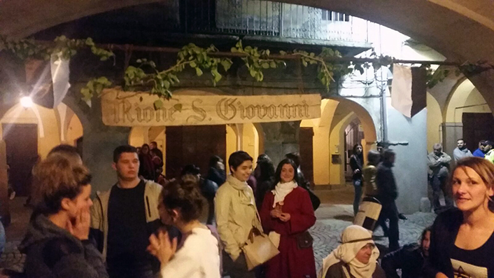 Questo il programma di Sabato 20 maggio: dalle ore 19,00 avrà luogo l’apertura della Cassa Cambio, delle antiche bettole e mercato medievale. Dalle ore 20,00 alle 01,00: il centro storico offrirà uno  spaccato di vita medievale con esibizioni d’arme, giocolieri e giullarate da parte dei gruppi provenienti da tutta Italia. Nel cortile del palazzo municipale sarà allestito l’accampamento d’Armi e, nell’area Rex Imperi di piazza Pinelli, saranno ospitati spettacoli continui di tutti i gruppi presenti. Sempre nella centrale piazza Pinelli si svolgerà l’inizio del festival incentrato sui combattimenti storici, sul festiva del combattimento storico “Gladio Rex Imperi” valido come pre-selezione di scherma storica per il festival denominato “Festum Laminis” e il premio “Torneo di Maggio dedicato ai sette borghi cuorgnatesi. Alle ore 21,39, in via Arduino, le “getti festanti accolgono in un Borgo illuminato dalla luce delle torce Re Arduino, la Regina Berta, la loro Corte ed armata con cavalleria. Ospiti de lo borgo antico: il Minotauro, Folet dla Magra, I Credendari di Ivrea, Il Gruppo Storico Adelaide di Susa, La  Castellata di Chiaverano, gli Sbandieratori di Oglianico, gli Chevaliers de Arpitan e tanti altri”. Le bettole rimarranno aperte fino alle tre del mattino seguente. L’ingresso nel centro storico costerà due euro. L’ingresso è gratuito per i soci della Pro loco che dovranno esibire la tessera del 2016, per i residenti del centro storico che dovranno munirsi del documento di identità.