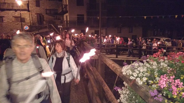 “Anche quest’anno si è svolto il pellegrinaggio con partenza dalle 4,00 per la processione da Champorcher fino al lago del Miserin: 5 ore di cammino scandite dalla preghiera e dalla riflessione finì all’arrivo alla cappella omonima dedicata alla Madonna vicino al lago. Un pellegrinaggio scandito dal passo notturno fino al mattino, una lunga fila senza soluzione di continuità fino a quando i pellegrini sono arrivati finalmente alla metà, stanchi ma soddisfatti . Questo mi ha raccontato l’amico Sergio partecipe attivo dell’evento. Questo mi fa pensare che la vera casa di noi esseri umani non è una casa, ma è la strada è la vita stessa è un viaggio da fare a piedi. Nell’osservare le fotografie viene da pensare che camminando si apprende la vita, camminando si conoscono le persone, camminando si sanano le ferite del giorno prima. Avete camminato nella notte, guardando una stella, ascoltando una voce, seguendo le orme di quello che vi prevedeva meditando e riflettendo. E poi dicono che i più grandi pensieri sono concepiti mentre si cammina. Grazie a Sergio, Costanzo, Angela e Martino per avermi dato la possibilità virtuale di condividere questa esperienza attraverso le immagini fotografiche ed i Vostri pensieri”.