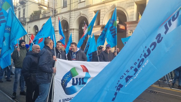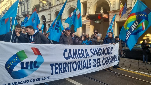 Alta partecipazione e mobilitazioni in tutta Italia per lo sciopero generale indetto da Cgil e Uil nella giornata odierna. Secondo le due Confederazioni, l’adesione ha superato il 70%, con mezzo milione di persone scese in piazza in 43 manifestazioni svolte in modo pacifico e democratico. Alla manifestazione di protesta che si è svolta a Torino nella mattinata di oggi, venerdì 29 novembre, ha anche partecipato una folta delegazione della Uil canavesana guidata dal segretario organizzativo Alberto Mancino. Cgil e Uil hanno criticato la legge di bilancio, ritenendola inadeguata rispetto alle necessità del Paese. Tra le priorità indicate vi sono l’aumento di salari e pensioni, il finanziamento di sanità, istruzione e servizi pubblici, e maggiori investimenti nelle politiche industriali.