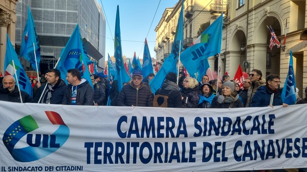 Delegazione della Uil canavesana alla manifestazione di Torino contro la manovra del governo