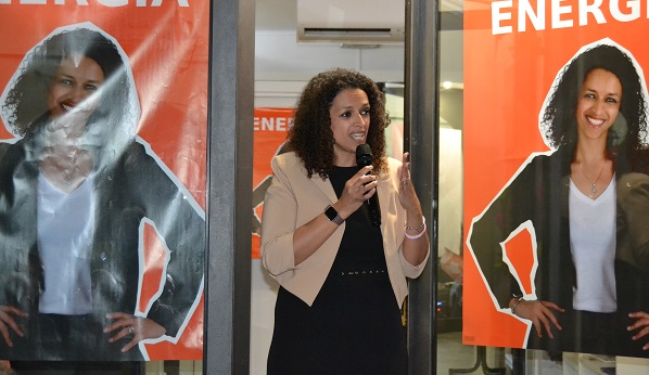 Energia e vitalità (e giovane età) caratterizzano la candidata sindaca di “Energia per Rivarolo”, Helen Ghirmu, che nel pomeriggio di ieri, lunedì 6 maggio, si è presentata alla stampa e ai concittadini con una conferenza sotto i portici di via Ivrea, davanti alla sede della Lista Civica in compagnia del sindaco uscente Alberto Rostagno e da alcuni esponenti della maggioranza. Una scelta determinata dal maltempo – dal momento che la convocazione originaria era sui gradoni dello Spazio Elementare – ma che nulla ha perso del proprio vero significato: Helen Hirmu ha fortemente desiderato presentarsi all’aperto, sotto gli occhi di tutti, per respirare l’aria della sua Città insieme ai rivarolesi.