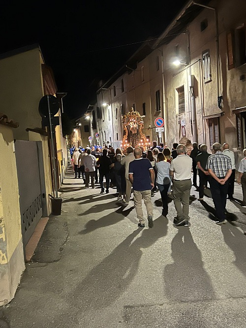 Al termine della funzione ha avuto luogo la consueta processione per le vie del borgo. Un lungo corteo di cittadini, fiaccole accese alla mano, ha accompagnato la statua della Madonna tra preghiere e canti, in un’atmosfera di silenzio e raccoglimento. Particolarmente suggestivo il passaggio nei pressi dell’acquedotto, dove il gioco delle luci ha contribuito a creare un momento di grande impatto emotivo.