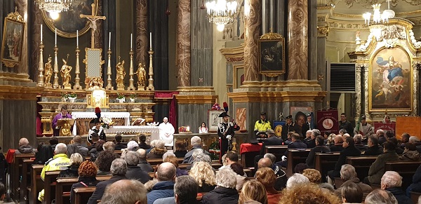 Carabinieri in festa a Favria, nella giornata di sabato 30 novembre per la tradizionale celebrazione della “Virgo Fidelis” patrona dell’Arma. Le manifestazioni in programma sono iniziate alle ore 16,45 nella del consiglio del Palazzo municipale. Ad accogliere i numerosissimi partecipanti è stato il sindaco di Favria Vittorio Bellone. Alle 18,00 è stata celebrata la Santa Messa, celebrata dal parroco don Gianni nella chiesa dei Santi Pietro e Paolo mentre alle 19,00 si è svolta la sfilata per le vie del paese accompagnata dalle note della Filarmonica.