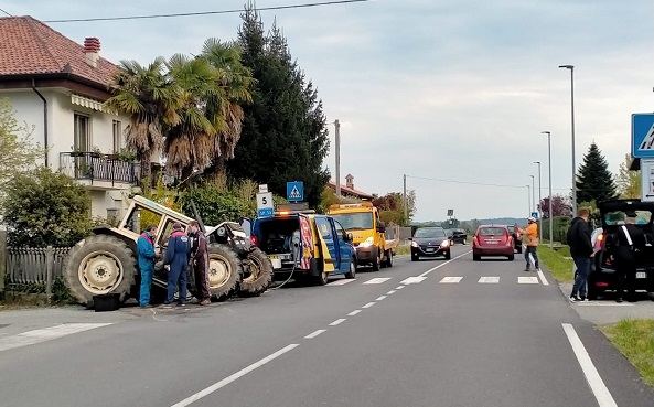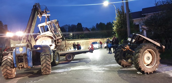 Spettacolare incidente stradale sulla strada provinciale 35 meglio conosciuta come “Favriasca” all’altezza dell’incrocio con via Front, all’ingresso del centro urbano. Qui si sono scontrati, per cause in via di accertamento un trattore “Lamborghini” e un furgone Fiat Fiorino. È accaduto nel tardo pomeriggio di oggi, mercoledì 14 aprile, intorno alle 18,00. L’impatto tra i due mezzi è stato così violento che il mezzo agricolo si è piegato in due.