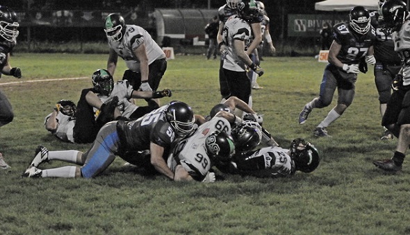 E i Mastini non hanno deluso. Scesi in campo determinati, i padroni di casa non hanno concesso nulla agli avversari in difesa, mentre l’attacco ha fatto vedere un gioco più vario, fluido e dinamico. Nel primo tempo sono andati a segno, Vassia su lancio di Cazzamani e poi con Daniele Torrente che ha iniziato il suo show personale marcando due punti con una Safety.