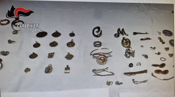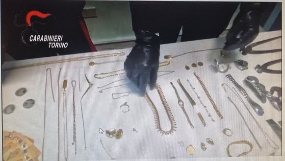 La pattuglia, durante un posto di controllo, ha fermato l’auto con a bordo i due uomini. Un controllo più approfondito del mezzo ha permesso di ritrovare un sacchetto con centinaia di monili in oro (catenine, anelli, fedi e collane) per un totale di 573 grammi e vario materiale atto allo scasso. Al momento del rinvenimento i due uomini non hanno saputo giustificare il possesso del citato materiale che è stato sequestrato in attesa di ulteriori accertamenti.