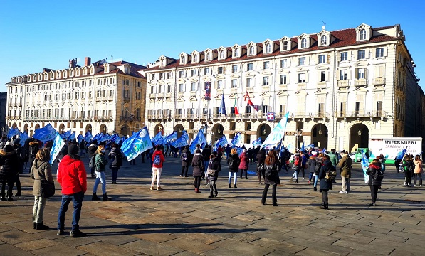 Centinaia di infermieri in piazza Castello a Torino provenienti da tutta la Regione per rivendicare riconoscimenti e condizioni di lavoro dignitose. Oltre a rivendicare la mancata erogazione delle indennità specifica infermieristica da parte del governo e maggiori fondi per le assunzioni sottolineando come le condizioni di lavoro siano diventate inaccettabili, i rappresentanti del Nursind, il sindacato delle professioni infermieristiche, ha incontrato la Giunta Regionale.