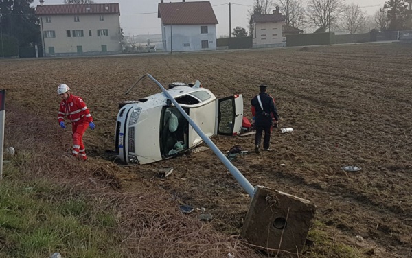 Ha perso il controllo della Fiat Punto per circostanze ancora da verificare, è uscita di strada e ha abbattuto nella folle corsa terminata in un prato che costeggia la strada, un palo dell’illuminazione pubblica.