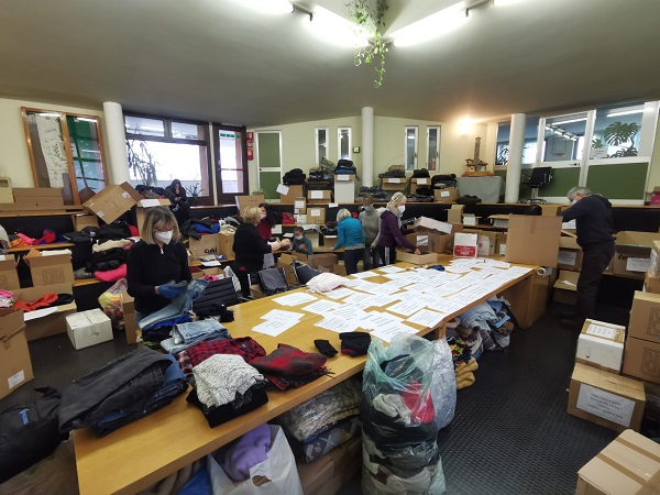 A Salassa ferve senza sosta la raccolta di indumenti e di alimenti a lunga durata da inviare alla popolazione Ucraina invasa dalle truppe russe. Un altro grande gesto di generosità, attivato su iniziativa della rotariana Roberta Bianchetta, che dimostra come nei momenti più drammatici il Canavese non si risparmia ed è sempre fortemente solidale con chi soffre. Lo dimostra il fatto che oltre ai sei pallet già ultimati e che partiranno il prossimo mercoledì, ci sarebbe ancora molto materiale da inviare. Ma le spedizioni costano e i volontari sono alla ricerca di benefattori che possano aiutare il Comune di Salassa a coprire i costi di spedizione. Un esempio pratico: il singolo pallet delle dimensioni di 20 per 120 e 200 centimetri ha un costo di 400 euro e anche solo coprendo una parte delle spese si potrebbe contribuire ad aiutare concretamente le persone in difficoltà.