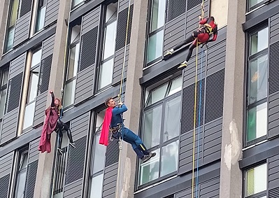 I supereroi acrobatici dell’associazione SEA sono tornati a Ivrea per un’iniziativa speciale dedicata ai piccoli pazienti: portare un momento di gioia e leggerezza direttamente tra le corsie, in occasione di Halloween. Travestiti da Superman, da un vampiro e da altri personaggi dell’immaginario fantastico, i volontari si sono calati dal terrazzo dell’edificio sorprendendo bambini, genitori e personale sanitario. Dalle finestre e dal cortile si sono levati applausi e sorrisi: un’emozione condivisa anche da alcune classi della scuola primaria Nigra, presenti con le insegnanti per assistere allo spettacolo.