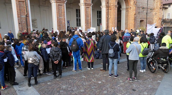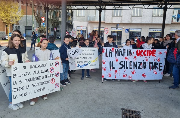 “Insieme per ricordare”: in tanti, tantissimi, in corteo per ricordare le vittime innocenti delle mafie. Quella di mercoledì 22 marzo è stata una giornata che Chivasso non dimenticherà facilmente: il lungo corteo, al quale hanno preso parte cittadini, amministratori e tanti scolari della scuola primaria cittadina, è partito alle 16,45 da piazza Carlo Noè e si è snodato per la centralissima via Torino e, dopo le soste effettuate in piazza della Repubblica e in piazza Carlo Alberto Dalla Chiesa, dove si affaccia il palazzo municipale, per due commoventi momenti di riflessione, ha avuto termine davanti alla biblioteca MoviMente.