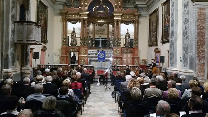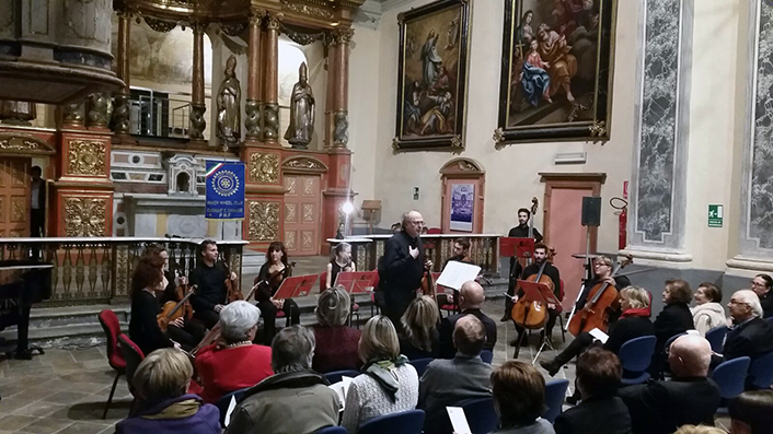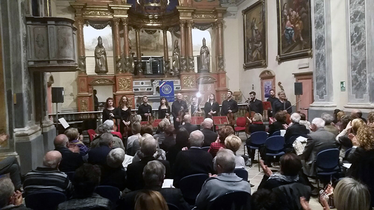 Ha riscosso un grande successo il concerto eseguito nella serata di venerdì 20 novembre presso l’ex chiesa S.S. Trinità dagli Archi dell’Orchestra Filarmonica di Torino diretti dal maestro concertatore Sergio Lamberto. Le note delle sinfonie di Johann Pachelbel, dell’abate rosso Antonio Vivaldi e dell’immortale Wolfang Amadeus Mozart, hanno emozionato il folto pubblico che ha partecipato al “service” promosso e organizzato dall’Inner Wheel di Cuorgnè e Canavese presieduto da Nicoletta Boggio Aimonino.