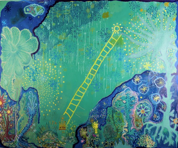 Ioan presenta una grande tela e alcune xilografie, da cui son stati tratti i manifesti che a Luglio sono stati affissi nello spazio pubblico in occasione della festa patronale di Rivarolo i cui soggetti attingono, attraverso il suo immaginario, all’Anno Giacobeo.