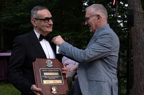 Emozionante la consegna del riconoscimento Melvin Jones Fellow a Maurizio Vermiglio, direttore della testata Il Canavese, premiato per la lunga carriera giornalistica e la vicinanza al Club.