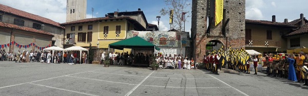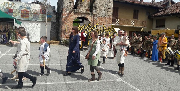 Ancora una volta il grazioso paese di Oglianico Canavese ritorna indietro nel tempo: di settecento anni per la precisione, intorno al 1300 appena dopo il Basso Medioevo, con le Idi di Maggio, svoltasi sabato 13 e domenica 14 che sono giunte quest’anno alla 37° edizione. Un grande successo in termini di partecipazione ha riscosso l’evento denominato il “Receptum”: si tratta in sostanza di un appuntamento partorito dalla fertile fantasia dei membri della Pro loco oglianicese che si è svolto nella serata di sabato 13 maggio. Unica condizione per poter partecipare alla grande festa: l’ingresso all’antico ricetto e avvenuto esclusivamente se si indossava il costume medievale. Un’iniziativa che ha coinvolto tutto il paese e i tanti visitatori che la rievocazione storica ha richiamato. E per chi non possedeva un costume bastava passare dal vestibolo per indossare i panni di dame, cavalieri e popolani.