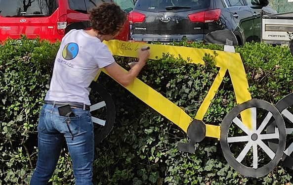 E’ stata una giornata gioiosa e impegnativa per Paola Gianotti che, sempre a Oglianico ha inaugurato, insieme alla sindaca Monica Vacha e agli esponenti dell’Amministrazione comunale, tre cartelli che invitano gli automobilisti per il rispetto del ciclista sulla strada. “Grazie Oglianico – ha scritto sul suo profilo social Paola Gianotti -. Stiamo invadendo l’Italia e non ci fermerà nessuno dal farlo. Perché non vogliamo che sia ucciso un ciclista al giorno sulle nostre stupende strade italiane”.