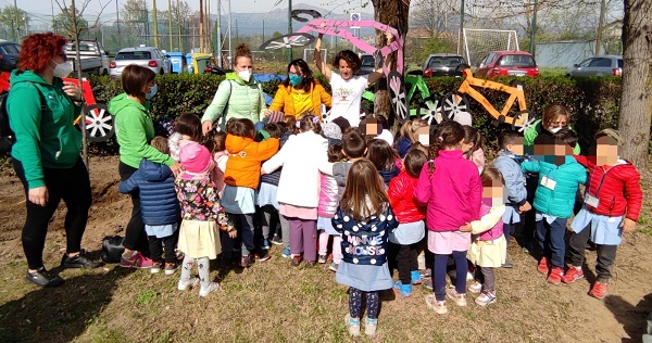 Oglianico: scuola materna in festa per la piantumazione di sei alberi insieme a Paola Gianotti
