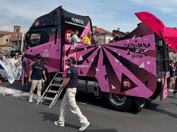 Per circa mezz’ora, il centro di Rivara si è trasformato in un vero e proprio palcoscenico a cielo aperto, animato da musica, intrattenimento, scenografici truck regionali e gadget distribuiti a tutti i presenti. Le vie cittadine si sono colorate di rosa e allegria, in un momento capace di unire appassionati, famiglie e curiosi in un abbraccio collettivo all’insegna dello sport, della comunità e della magia del Giro d’Italia.