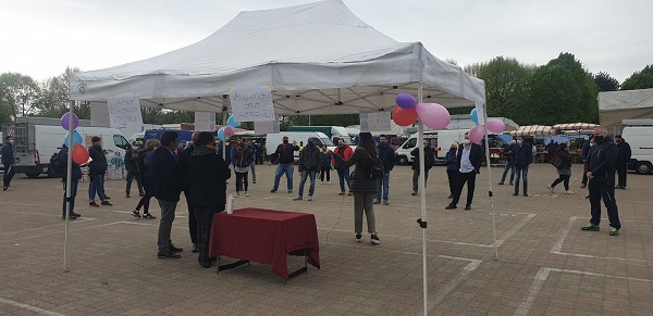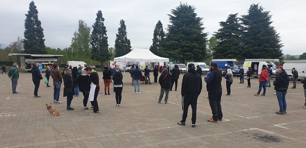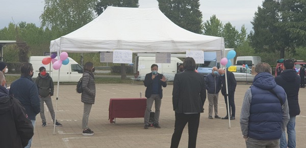 Hanno manifestato per chiedere non la carità ma di poter continuare a lavorare. Sono gli ambulanti mercatali ad essersi mobilitati nella mattinata di oggi, sabato 10 aprile, in piazza Massoglia a Rivarolo Canavese. Una cinquantina di commercianti, titolari delle attività ritenute “non essenziali” si sono presentati in piazza con i loro banchi nel giorno di mercato ma senza vendere nulla. È questa la categoria di ambulanti maggiormente penalizzata da questi 15 mesi di pandemia di Coronavirus. La manifestazione di protesta si è svolta all’insegna dello slogan “Il lavoro è dignità, non carità” e ha avuto luogo in modo ordinato e pacifico nel rispetto della vigente normativa anti Covid e alla presenza di numerosi agenti della polizia locale e dei carabinieri della stazione di Rivarolo.