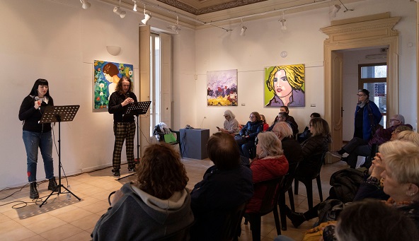 Mara Risitano e Matteo Mo hanno proposto alcuni brani  del libro dal titolo “Da qui a lì. Strategia del desiderio” (Giraldi Editore, 2004) dando voce ad alcune riflessioni di Eugenio Guarini: il suo pensiero e i suoi colori pervadono la primavera a Villa Vallero.