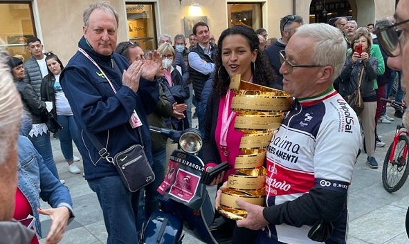 Una piazza Garibaldi a Rivarolo Canavese così affollata, norme Covid permettendo, non la di vedeva da tempo. L’occasione? La presentazione ufficiale del “Trofeo Senza Fine”, che sarà assegnato al vincitore del Giro d’Italia 2022. L’evento ha avuto luogo nel tardo pomeriggio di oggi, sabato 26 marzo. Mancano circa due mesi dalla tappa Rivarolo Canavese-Cogne è la città di prepara a dare il giusto risalto alla manifestazione che, come ha sottolineato il sindaco Alberto Rostagno, si presenta come l’evento sportivo dell’anno.