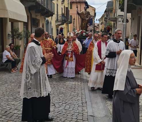 Il momento più solenne si è tenuto nella mattinata di domenica 27 luglio con la Santa Messa Pontificale presieduta dal vescovo di Ivrea, monsignor Daniele Salera, nella Chiesa di San Giacomo Apostolo. Al termine, la tradizionale processione per le vie cittadine ha visto la partecipazione di numerose autorità civili e militari, tra cui il sindaco Martino Zucco Chinà, l’eurodeputato Giovanni Crosetto e il consigliere regionale Sergio Bartoli.