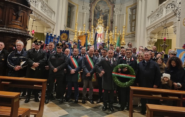 I festeggiamenti sono proseguiti con la messa celebrata nella chiesa parrocchiale di San Michele Arcangelo officiata dal parroco don Raffaele Roffino, al termine della quale, dopo la benedizione delle corone di alloro, ha fatto seguito la commovente lettura della “preghiera del carabiniere”.