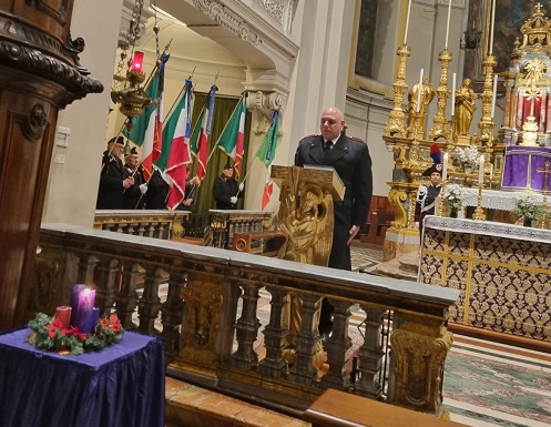 La prima edizione della celebrazione in onore della “Virgo Fidelis”, patrona dell’Arma, svoltasi sotto la presidenza del luogotenente in congedo Ignazio Mammino, da un anno alla guida della sezione “Battuello” dell’Associazione Nazionale Carabinieri, ha registrato un successo degno di nota. La manifestazione ha avuto luogo a Rivarolo Canavese e a Favria nel tardo pomeriggio e nella serata di ieri, sabato 2 dicembre, in caserma, alla presenza del capitano Manuel Grasso, comandante della compagnia di Ivrea, la donazione di un quadro appena restaurato che raffigura lo stemma araldico dell’Arm restaurato dalla pittrice castellamontese Bianca Sandri.