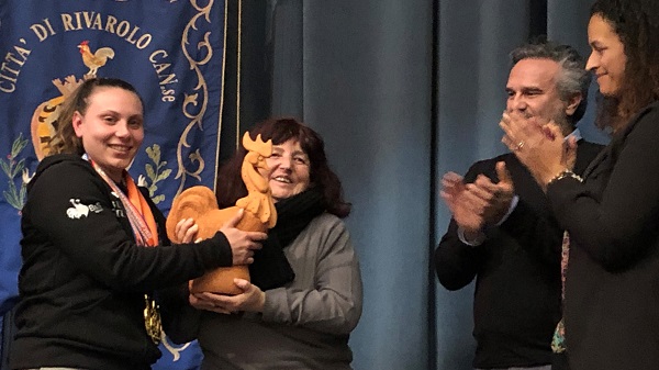 A fine serata, grande attesa per la consegna del riconoscimento Testimonial dello Sport, che nelle scorse edizioni era stato assegnato, tra gli altri, anche al ciclista Marco Canola, a Gianlorenzo Blengini, già allenatore della nazionale maschile di pallavolo e al maratoneta rivarolese Valter Durbano. per il 2022, l’Amministrazione ha premiato Giulia Buffo, classe 1997, componente della Rem Bu Kan Karate. In Olanda Giulia ha ottenuto tre ori e un 4 posto ai campionati Europei Skif nelle tre delle 4 competizioni in cui era partecipante, ovvero Kata Individule – Kata a squadre – Kumitè a squadre – 4′ posto Kumite’ individuale. Giulia, oltre ad essere atleta agonista è allenatrice, maestra a Castellamonte, Rueglio ed Ivrea.