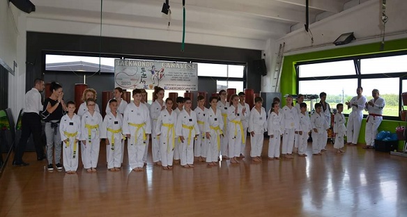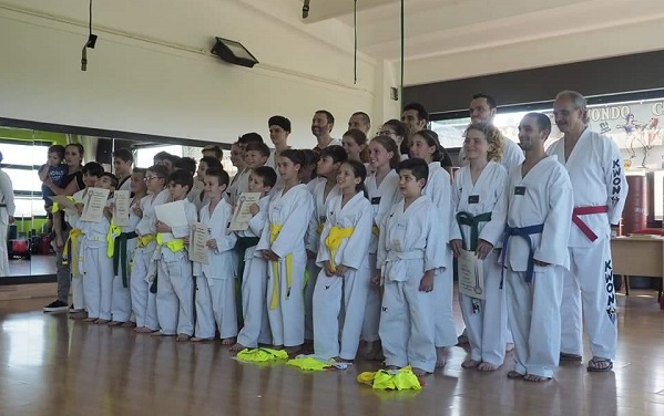 Si è chiuso all’insegna della soddisfazione l’anno sportivo della Taekwondo Canavese, sabato 8 giugno nella palestra New Gym Tonic gremita all’inverosimile, si sono svolti gli esami per il passaggio di cintura, che hanno visto oltre 30 tra adulti e junior conquistare con successo il grado più alto nella lunga successione della disciplina coreana. Hanno conquistato la cintura bianco-gialla Manuel D’Elia e Lorenzo Ciambrone, sono passati alla cintura gialla Giulia Beatrice Demaria, Beatrice Bruni, Matteo Marone, Asia Rotundo, Alice Ierardi, Matei Daniel Florin, Thomas Cerminara, Valentino Galasso, Gabriel Galasso, Nicolo Artioli.