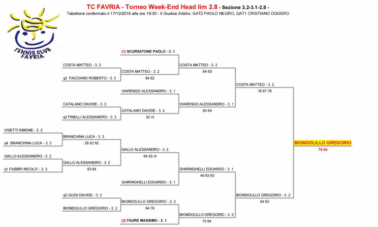 La gioventù sale in cattedra al TC Favria: la finale del Torneo FIT HEAD Week-End lim 2.8 ha visto infatti prevalere Gregorio Biondolillo sull’ostico e mai domo maestro cuneese Matteo Costa.