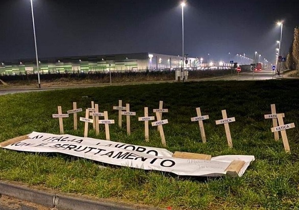 Hanno agito di notte allestendo un cimitero simbolico davanti allo stabilimento Amazon di Torrazza Piemonte e a Vercelli. A effettuare il blitz sono state le “Mascherine Tricolori” che già la scorsa settimana hanno insenato proteste in varie città italiane tra le quali Torino. Le tombe fittizie recano delle scritte che rappresentano la morte dei diritti fondamentali dei lavoratori della multinazionale.