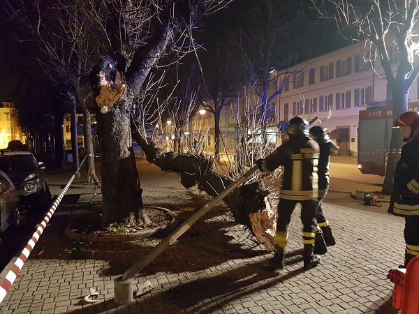 L’albero dal tronco massiccio è crollato all’improvviso senza neanche uno scricchiolio: il caso ha voluto che in quel momento in viale Torino non ci fossero passanti. Tragedia sfiorata a Rivarolo Canavese nella serata di ieri mercoledì 22 febbraio intorno alle 23,30.